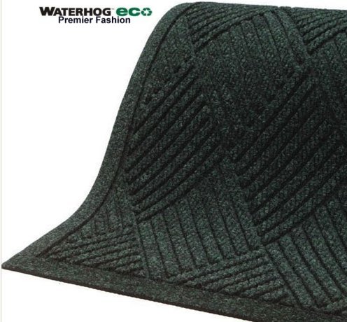 · Unique ridged construction on these floor mats effectively removes and traps dirt and moisture beneath shoe level. · Exclusive rubber-reinforced face nubs on these door mats prevent the pile from crushing - maintaining high performance and extending product life. · 100% post consumer recycled PET face that is reclaimed from plastic bottles. Every 3 x 5 diverts approximately 60 plastic bottles from landfills. A multi-denier fiber construction combines thick fibers for scraping with fine fibers for wiping, providing better performance and longer life. These entrance mats fabric dries quickly and prevents fading and rotting. These door mats can easily be vacuumed or hosed off. · Waterhog Premier Fashion's highly durable, attractive fabric border makes it the perfect choice for indoor or outdoor applications. · Exclusive "water dam" allows Waterhog Eco Premier Fashion entrance mats to trap dirt and water so they stay in the mat and off your floor - minimizing slip hazards and floor damage around the perimeter of the floor mat. · These Entrance mats are certified slip resistant by the National Floor Safety Institute. · Pile height is 3/8" |