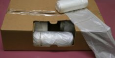 Flat Pack Trash Bags or Coreless Rolls - Natural Clear High Density Can liners. Light, Medium, Heavy waste liners. RH2424L