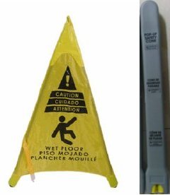 Spring Pop Out Caution Wet Floor Sign Trilingual 30" Tall Safety Signs Pop Out or pop up wet floor bright yellow triangle signs 30 inches high collapsible cones allow 360 degrees of visibility at a moments notice. Safety sign wet floor come with storage tubes that can easily be mounted to a wall, janitors cart or column. Universal symbol and trilingual message ensure easy readability. Workers choice safety sign or wet floor sign pop out are ready to use. Discounts for 6 Safety Signs Pop Out wet floor signs bright yellow triangle signs 30 inches high with heavy duty tube holder. |